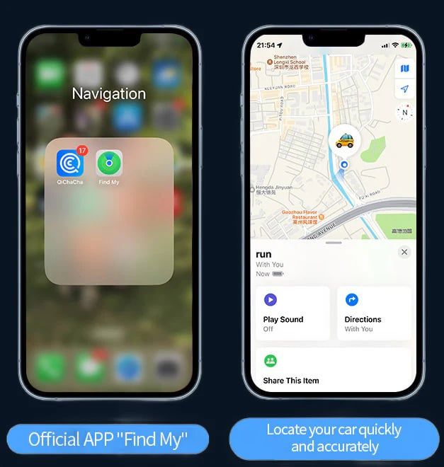 No software download required, supports Apple's native location app, allowing users to track their devices efficiently through the iPhone Find My app. Allows you to precisely locate your car in complex environments, saving you time.
